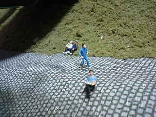 今日は、レールを敷設したら隠れてしまうこの段差の塗装です。